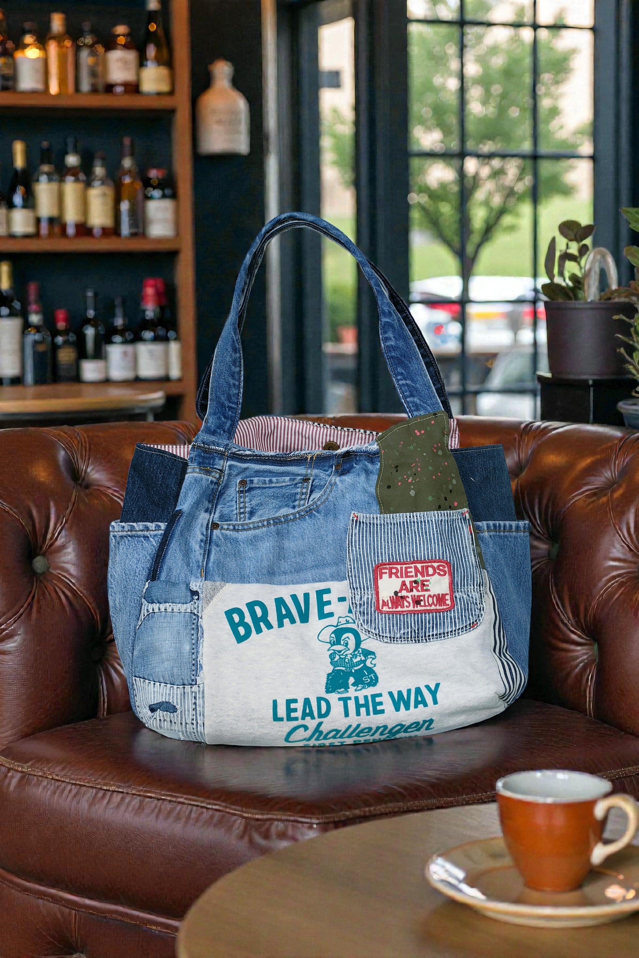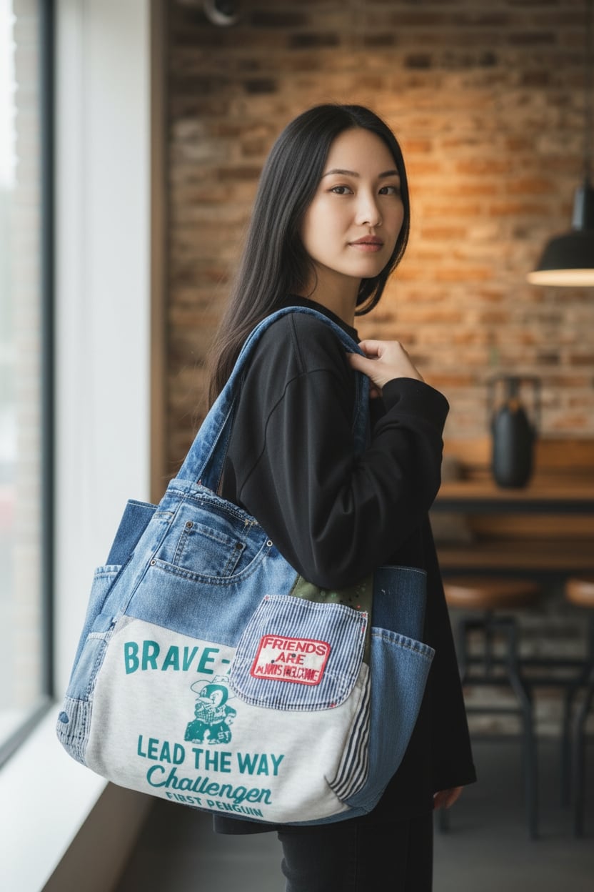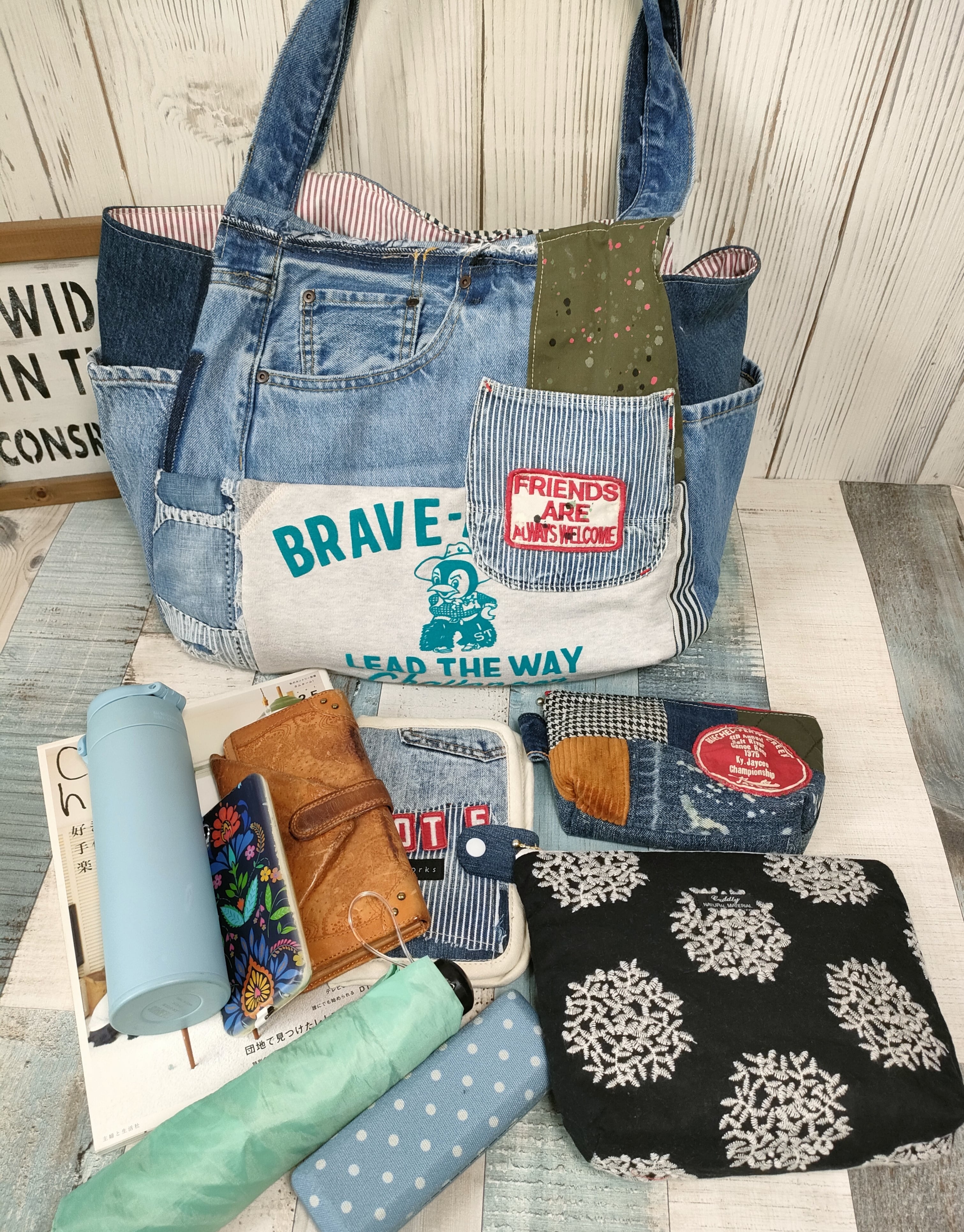おしゃれなデニムのパッチワークと